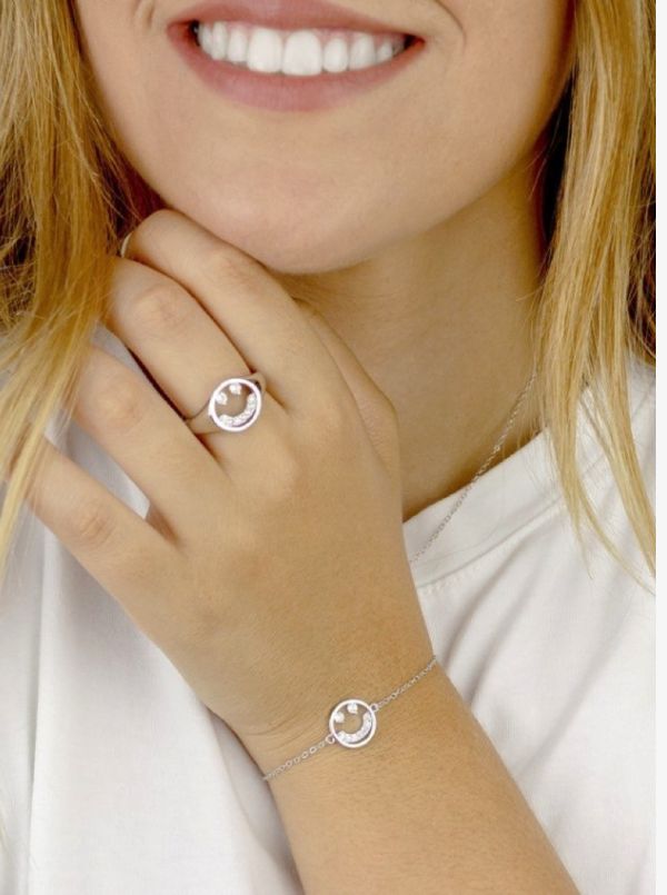 Anillo Ajustable de Plata con Emoticono Sonriente, Hueco Con Circonitas, Diámetro 12 mm, Ref: CHP123952A0